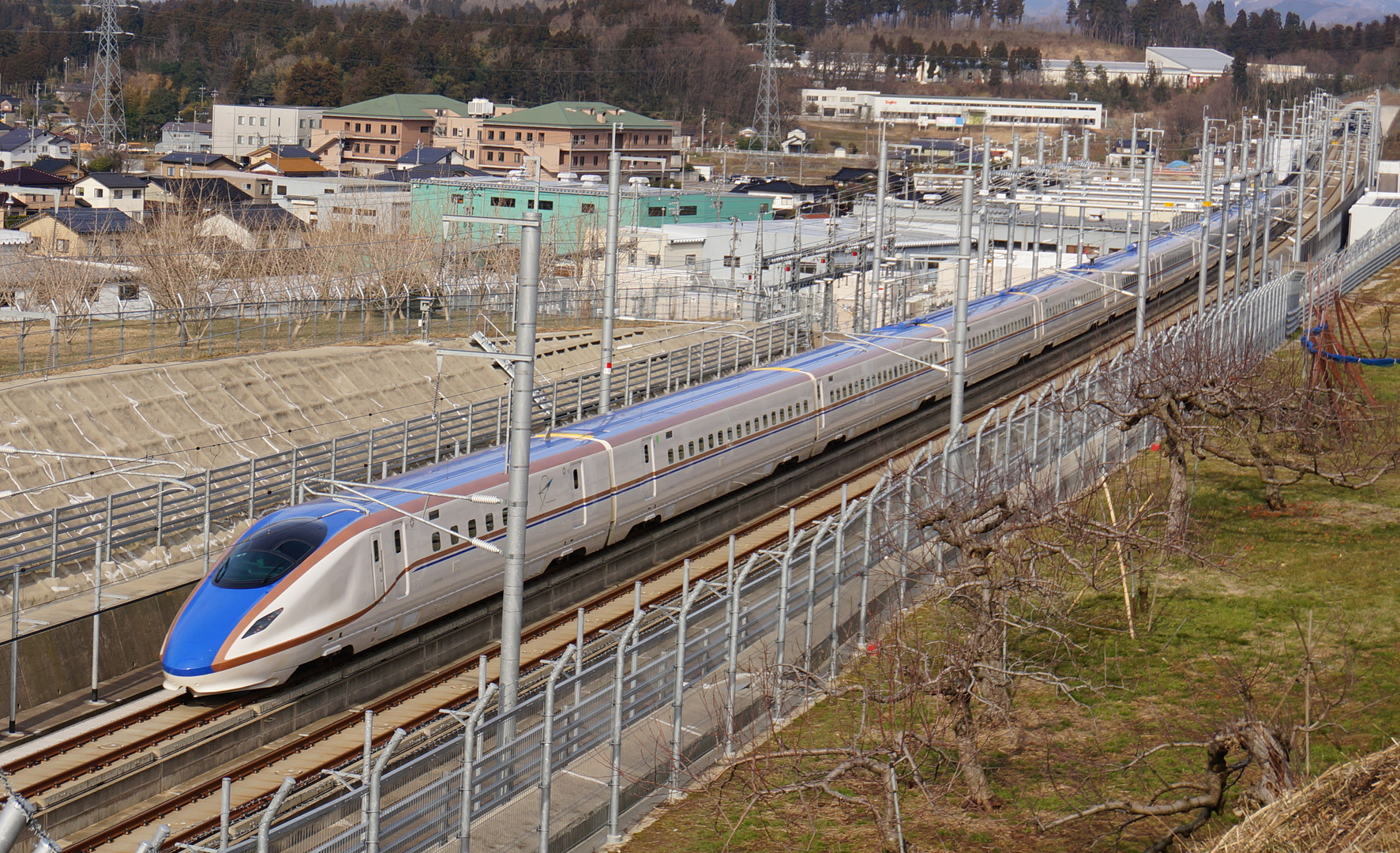 新幹線の見える丘公園が工事中なので、 その下の広場で撮影しました。 新幹線の中には 77倍の倍率に競り勝った方々が試乗中です(^○^) ちなみに私は撃沈しました・・・・・(-_-;)
