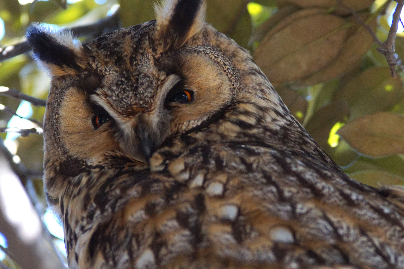 強風の葉陰でのんびり寝ていました。 こちらに気づいて薄目を。 起こしてごめん。
