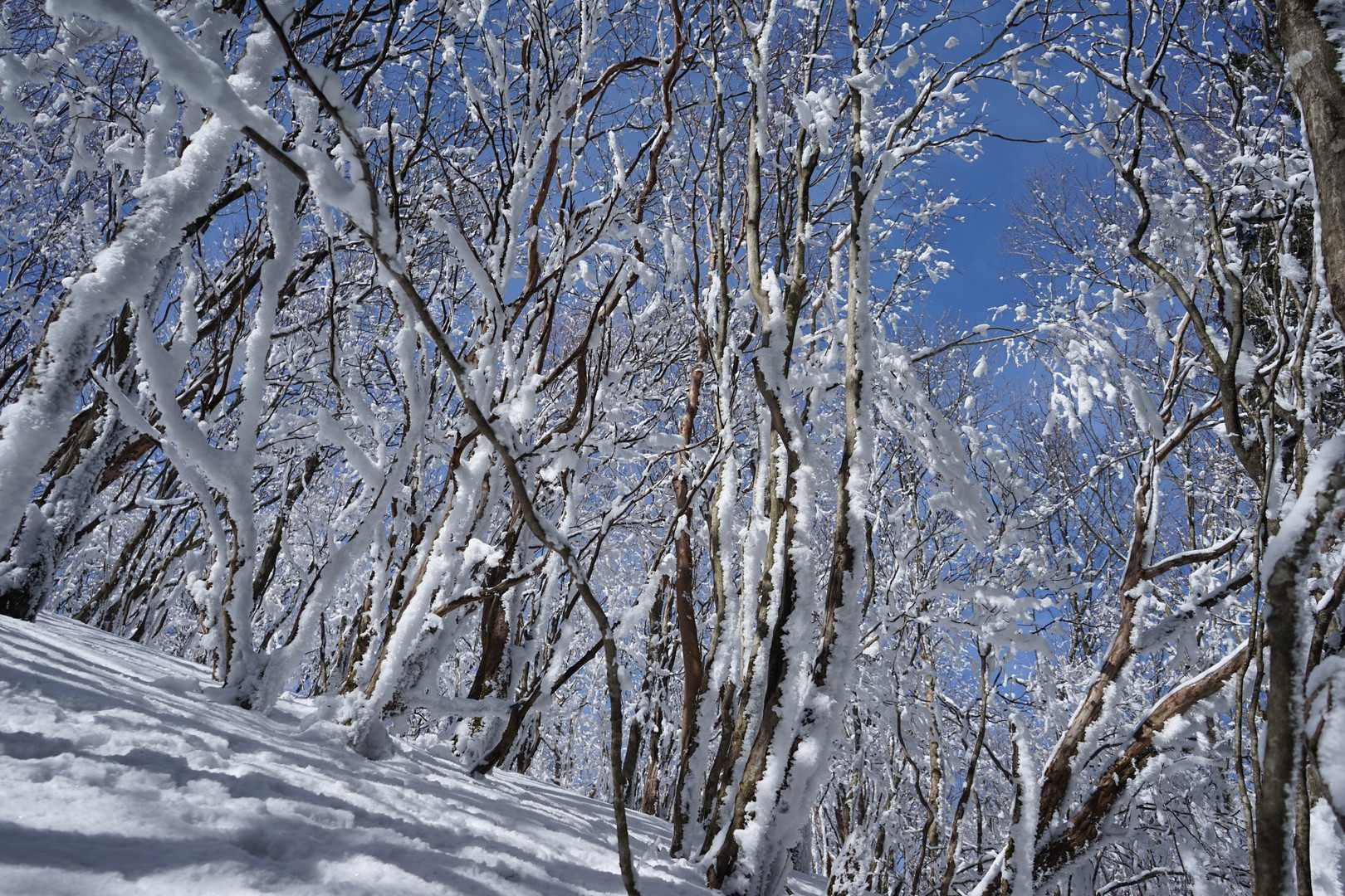 青空の下、まるで樹氷が歓声を上げているかのように見えました。