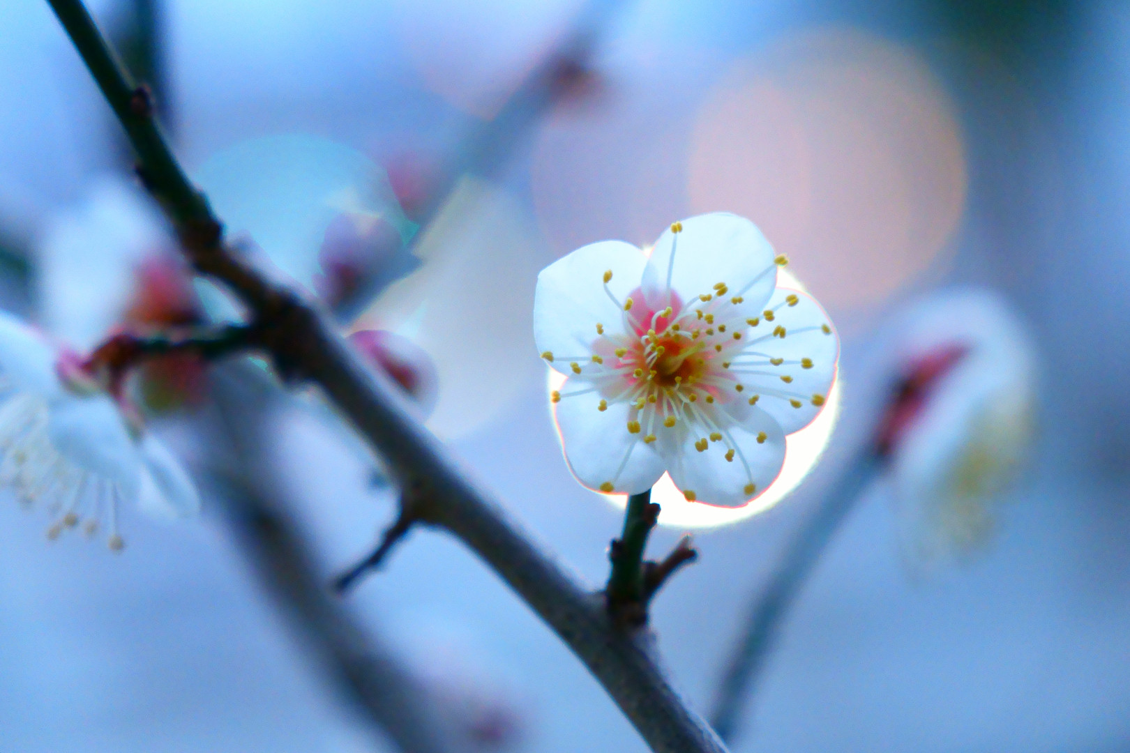 夜明けの街灯に照らし出された白梅が春の予感を感じさせてくれました^^v