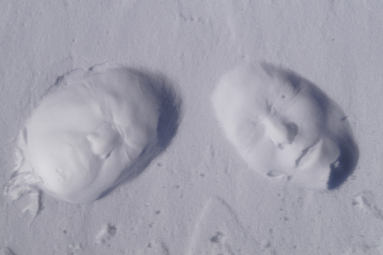 顔が浮き出て見えますが、顔を雪にうずめてへこんでいます。