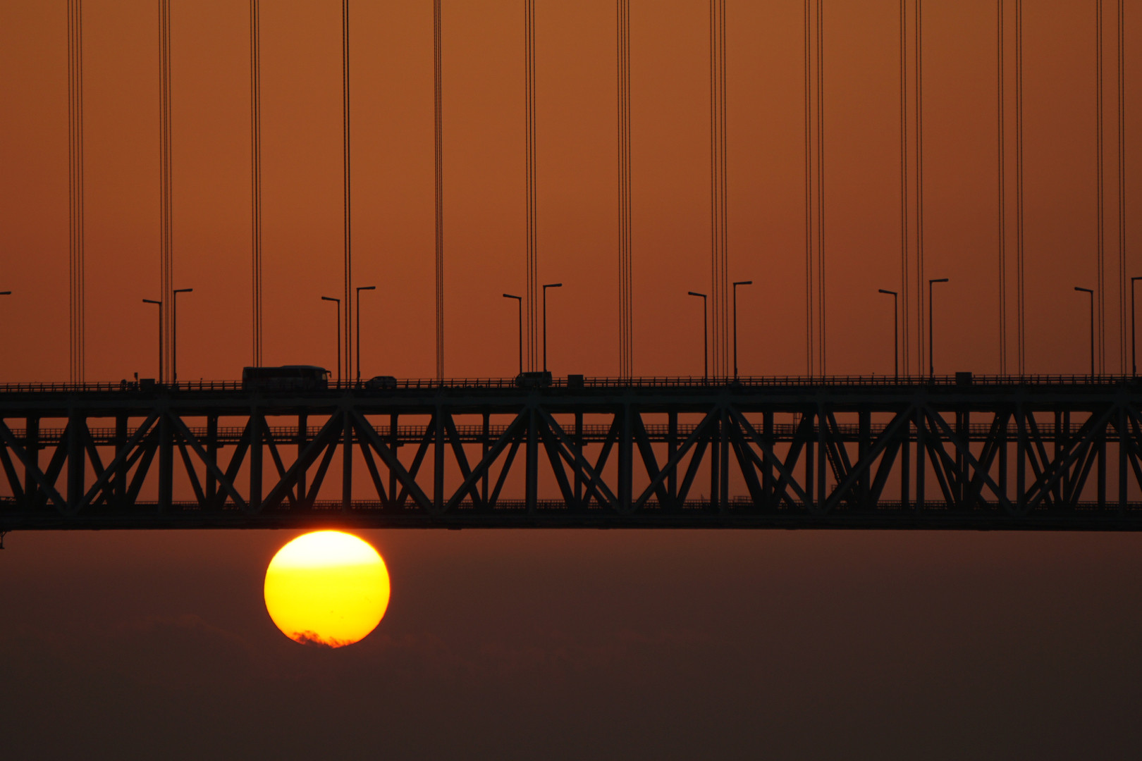 太陽が間もなく沈む9月の明石海峡