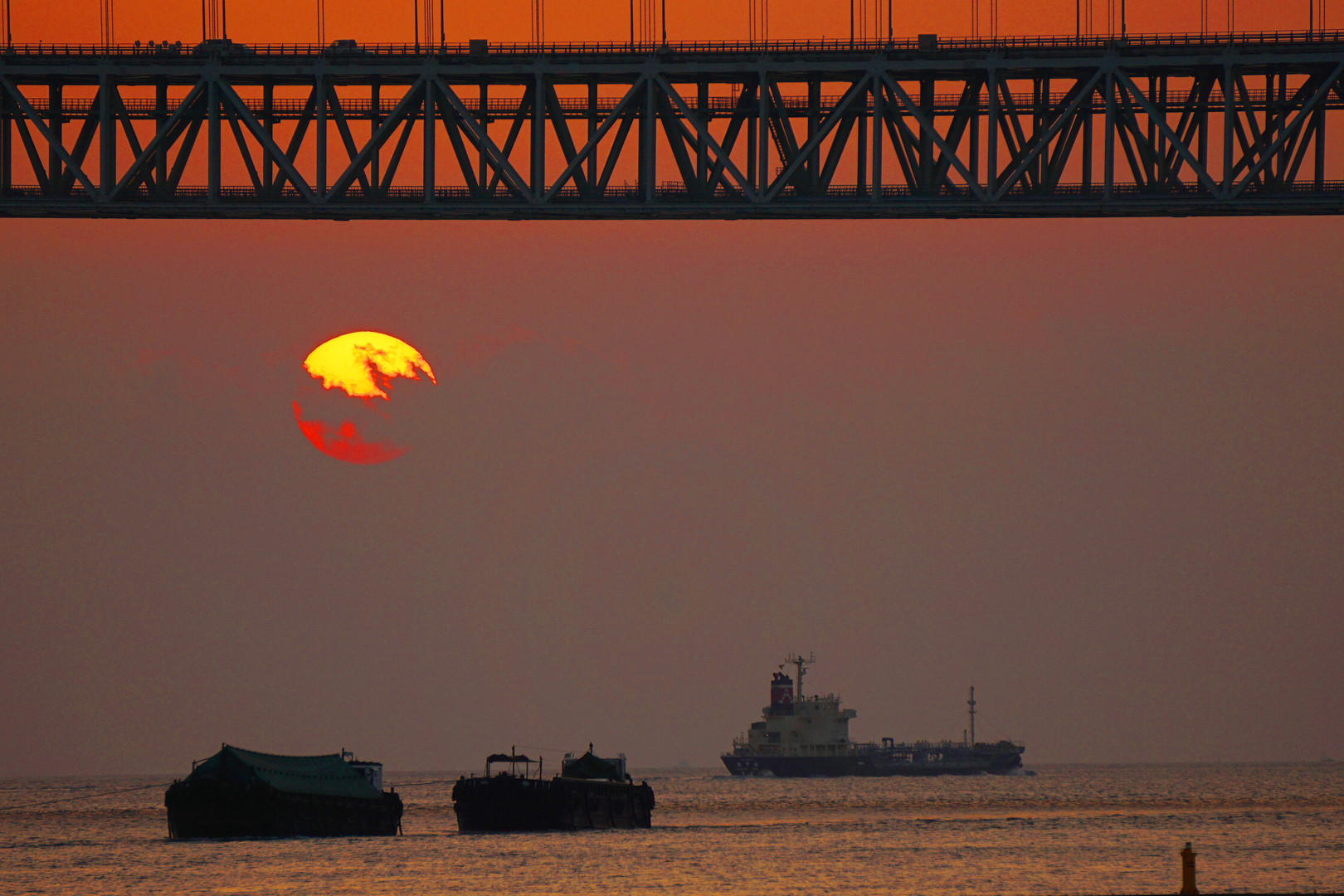 太陽が間もなく沈む9月の明石海峡