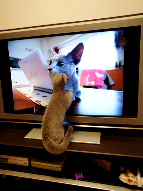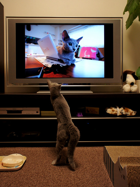 TVに映し出した本人の写真に反応してました。
