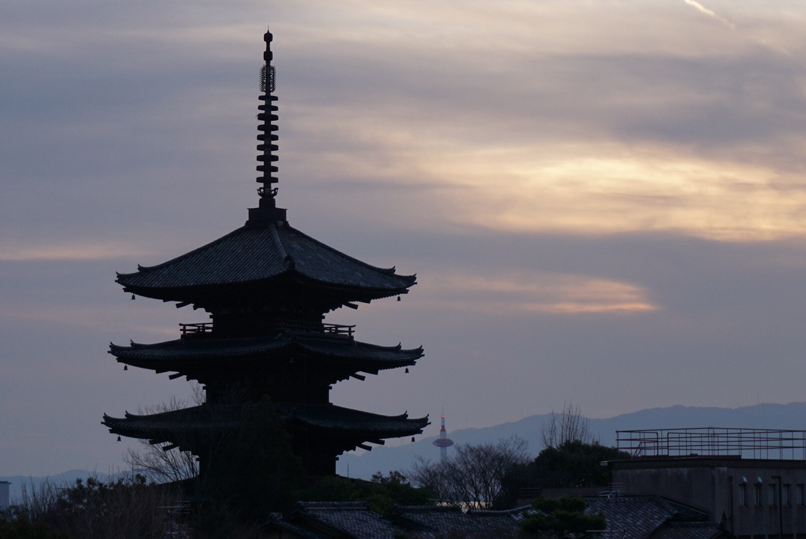 初めて購入したα6000で八坂の塔を撮りました。夕暮れをねらいましたが雲がかかり今ひとつです。