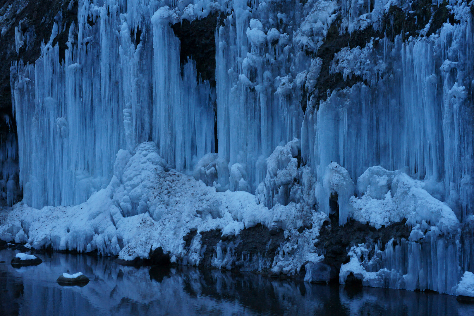 長野県木曽郡木曽町三岳井原地区にある氷柱郡(白川氷柱郡)を撮影してきました。 撮影当時はほとんど陽が沈み、猛烈に寒かったです。
