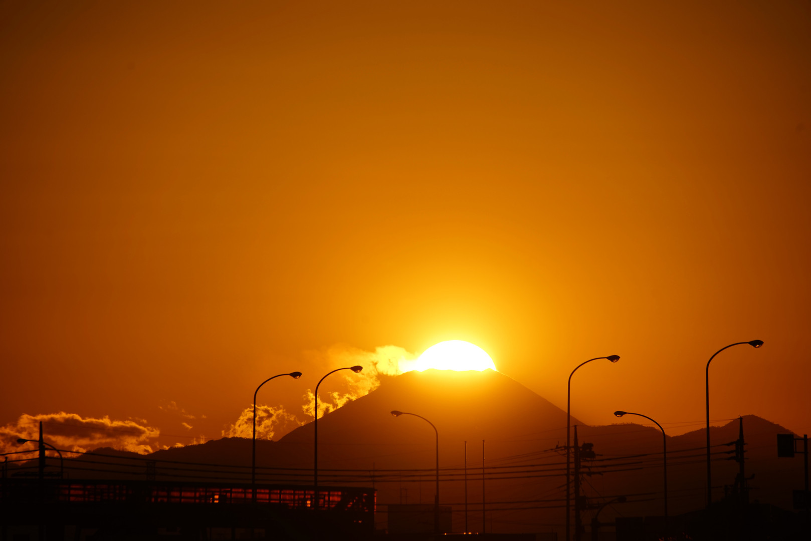 富士山に沈む太陽