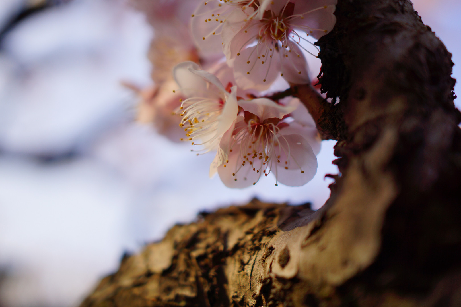 梅の花と、夕日で絶妙な色に染まる枝が気になりました。