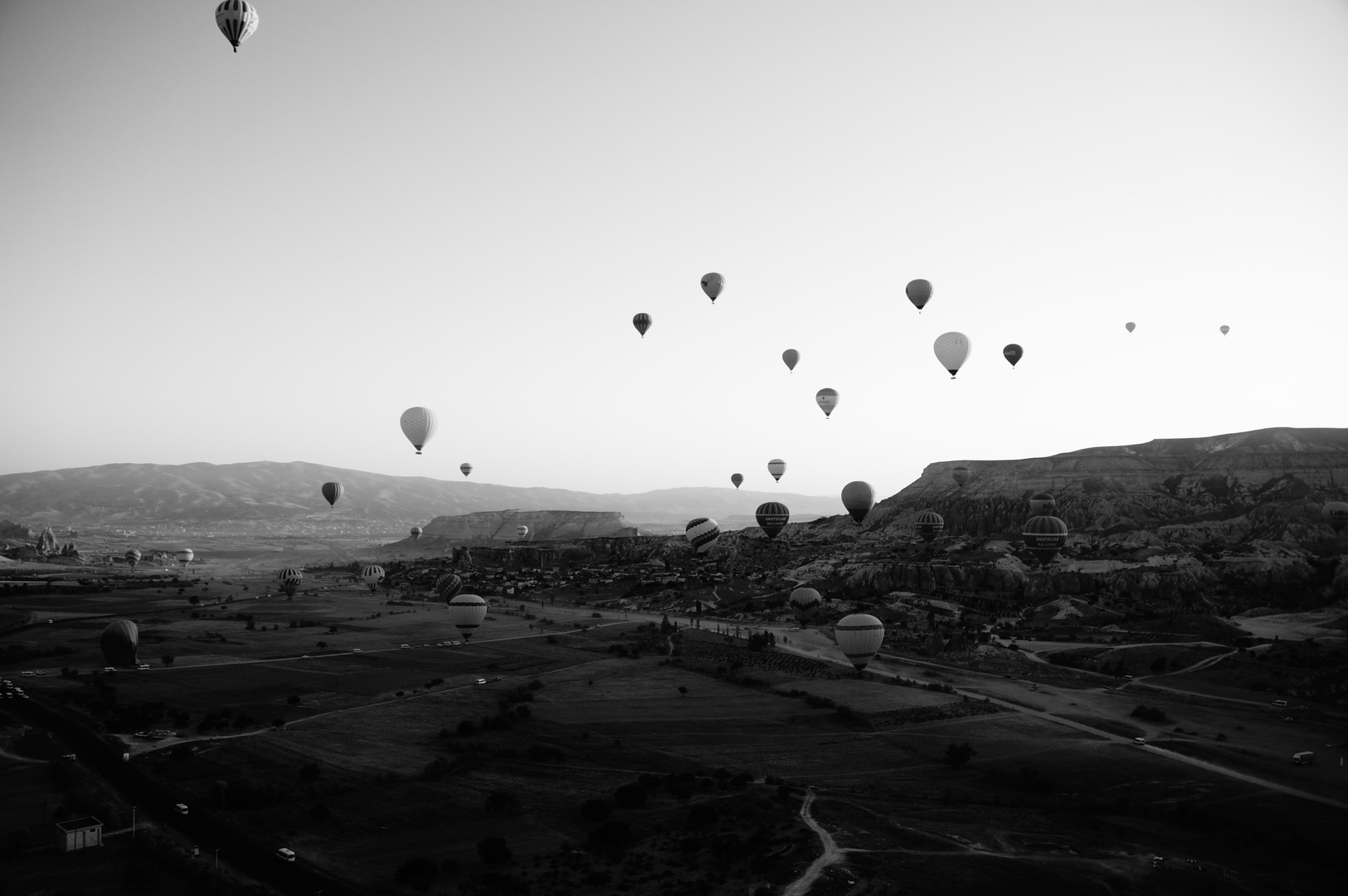 360度どこを見回しても気球が見える景色。 ずっとこの景色を見ていたいと思うくらい。。。心に残った瞬間でした。 カラーだとなかなか表現できなかったので白黒で。
