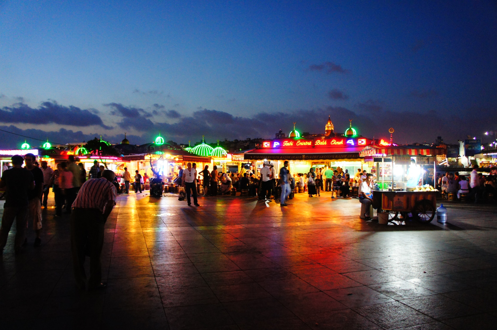 ラマザンで断食中の人々が日没後にやっと食事が摂れる時間。 家族連れやカップルで賑わっていた。