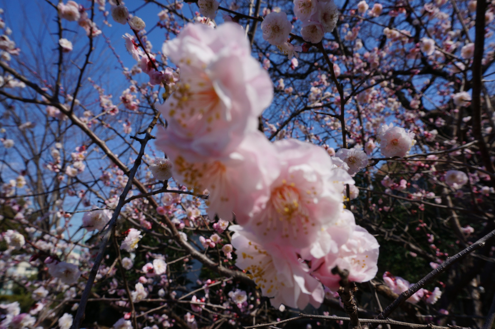 昼休み職場近くの公園で、撮影しました。 八重梅というそうです。