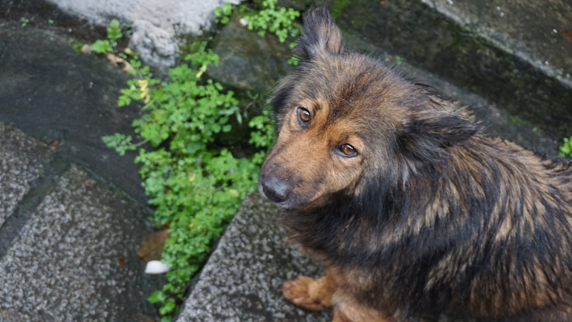 犬がいたので撮ろうと構えたら、目が合いました。本当に偶然撮れた一枚です。