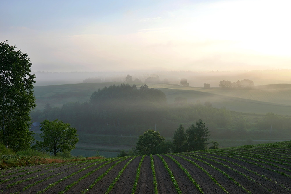 初夏の美瑛の朝の霞の中の風景で、とても幻想的でした。