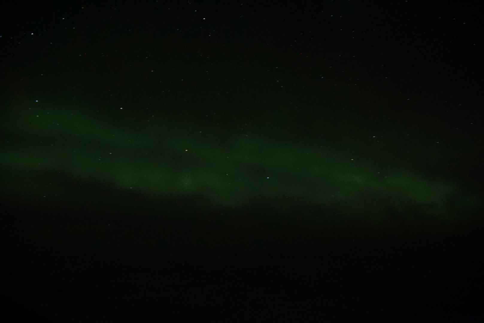 パリから帰国する機内にて、窓の外にオーロラが!! シャンパンで酔いが回っている中、夢中で撮影しましたw