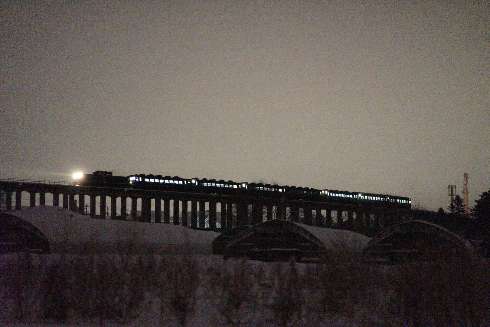 藤城の高架線を行く札幌行急行「はまなす」