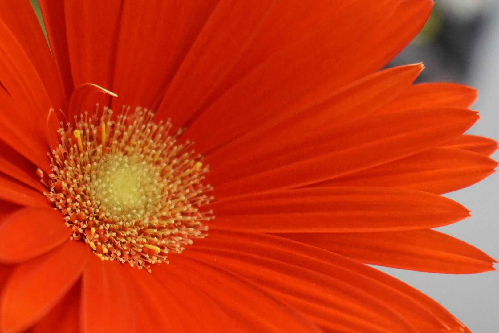 ソニーα5100購入記念に職場のガーベラを。 パワーレンズでズームしてなんちゃってマクロ。 室内光なのでやや色がくすんでますネ。