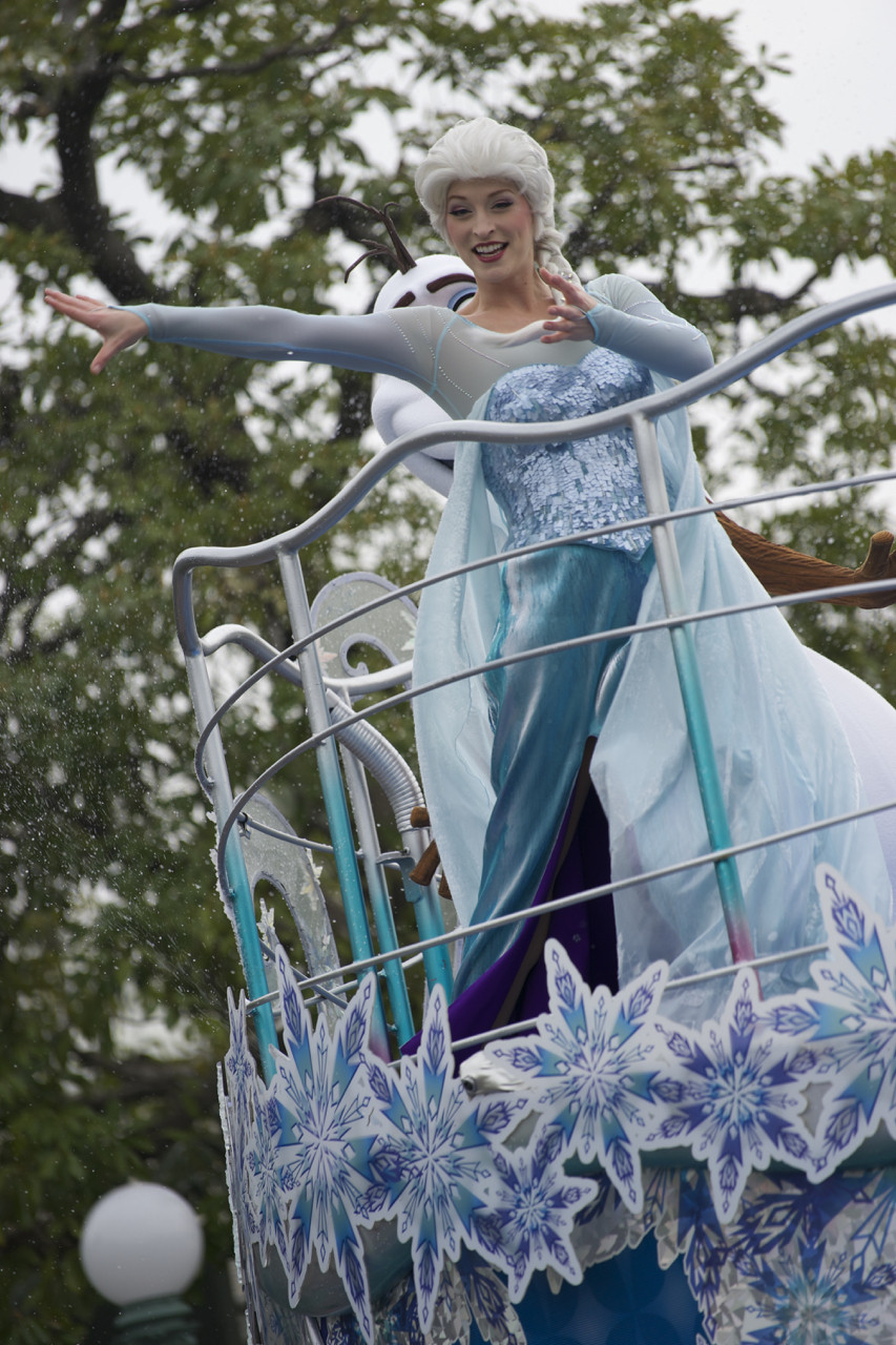 アナとエルサのパレードです。妻の綿密な計画により、見事にフロートが斜め前方の位置に停車。大きめのフロートなので最前列ではなく、少し後ろのベンチから楽しみました。FE70-200Gを初めてTDLへ持ち出しましたが、パレードでしっかりキャラクターを撮るのに本当に便利ですね。他のイベントで遠くの子供を撮るのにも大活躍でした。