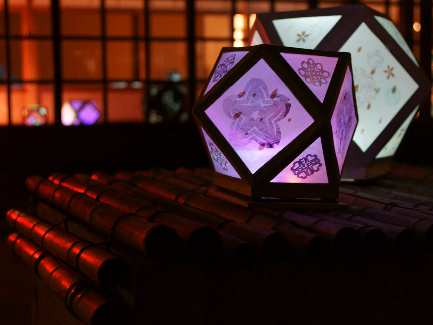 倉敷春の美観地区に灯ったあかりがほんのりと宵を照らしていました。
