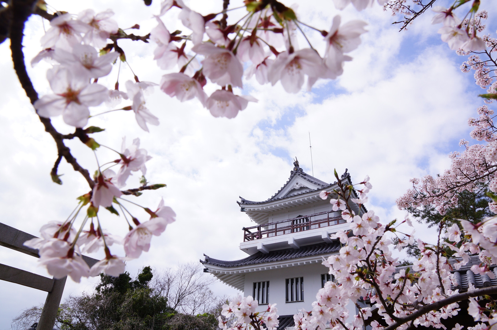 近場にある城の形をした展望台と桜を撮ってみました