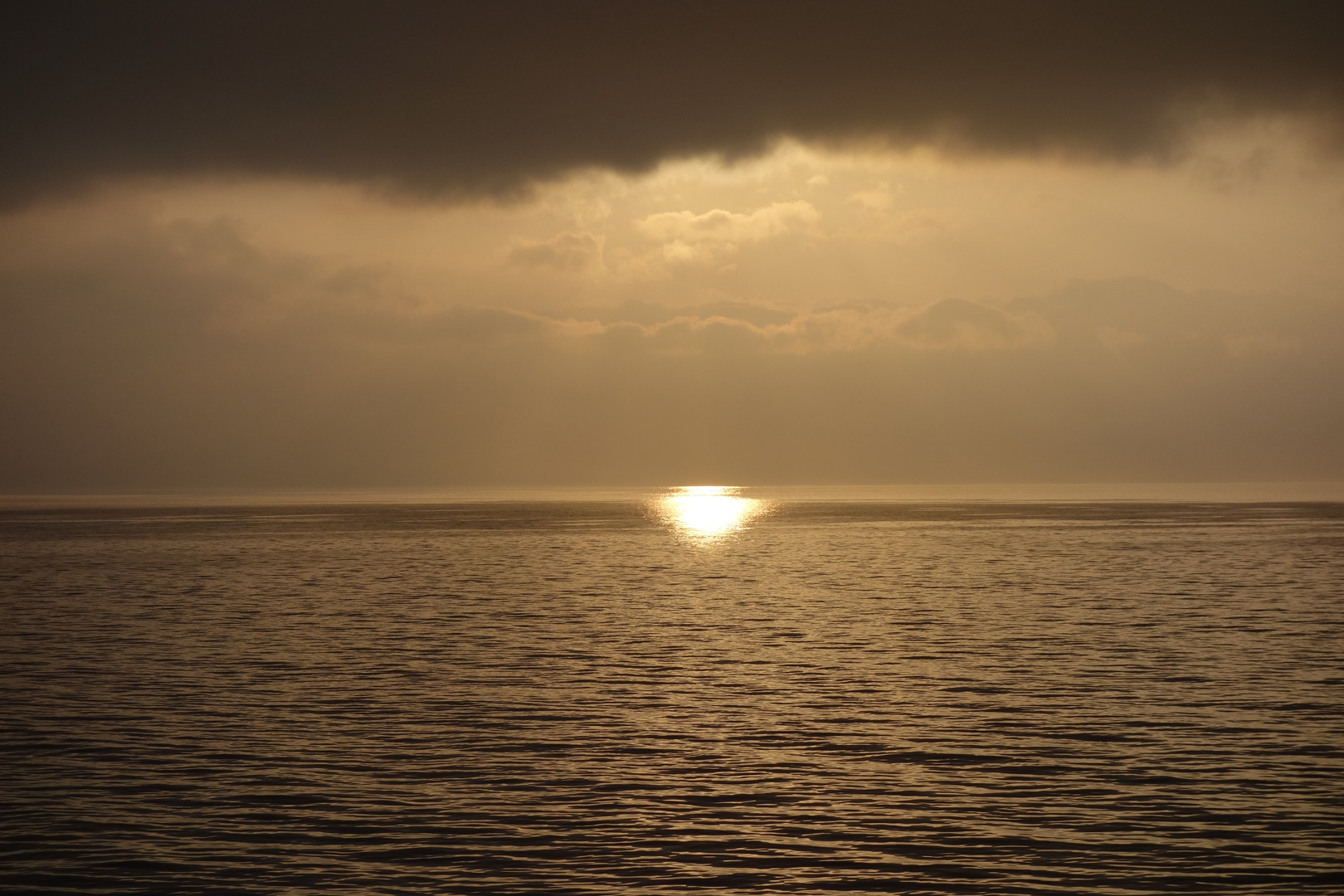 鹿児島・錦江湾での夕焼け。今日は船で1日が終了。