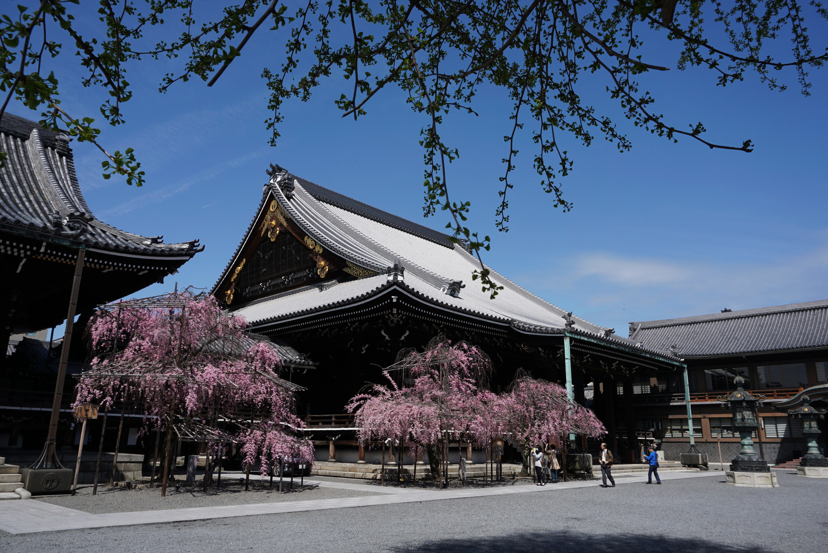 仏光寺、ここにも見事な枝垂桜があり満開を迎え散り始めていた。 今日は予報に反して昼間天候も良く絶好の花見となった。