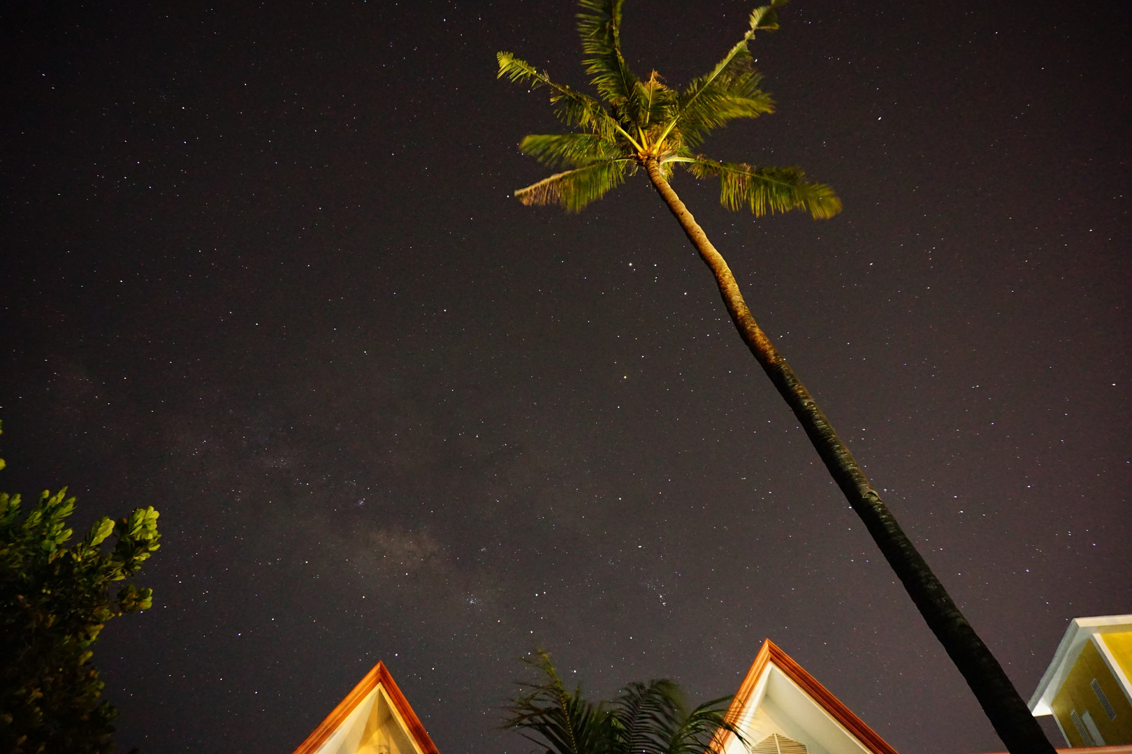 緯度が低いので天の川が横たわり、さそり座が立っています。 スクールが防犯上ずっと明るいのでこれが限界です。