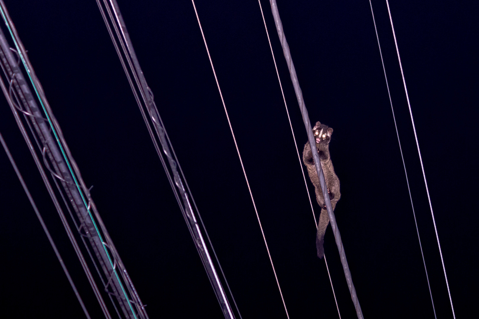 深夜、コンビニへいった帰りに獣の鳴き声が。 季節柄、猫ですかねーと思っていたら何やら電線を渡っていく姿。 見慣れぬ姿に思わず撮影、帰宅後調べてみたところハクビシンだったようです。 東京都内にいるとは知りませんでした、びっくりです。