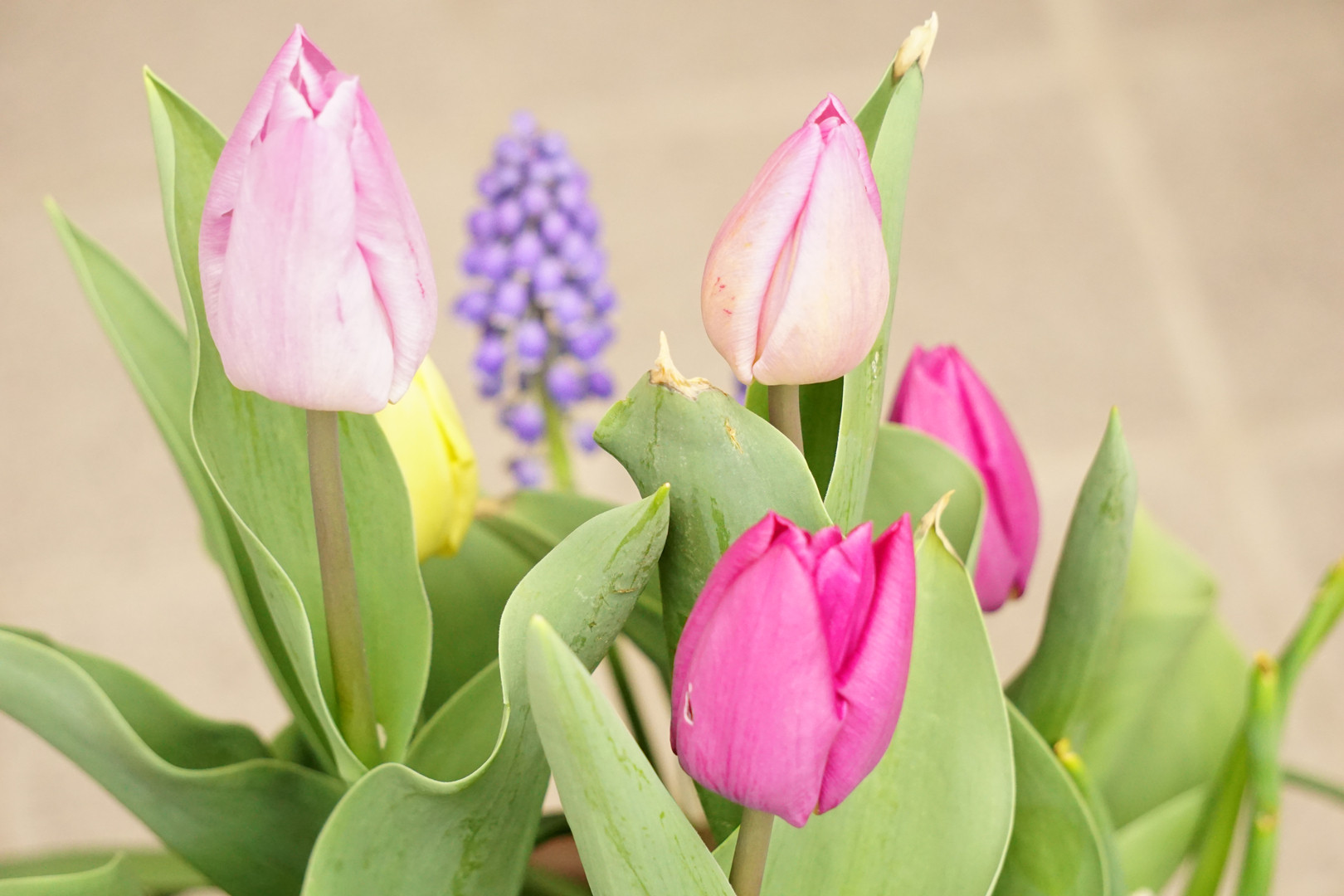 露出をプラスにしたら、思いのほかパステルカラーの春っぽい写真になりました。ちょっとキズものの花や葉ですが…。 冬の風雪に耐えてここまで育ちました。