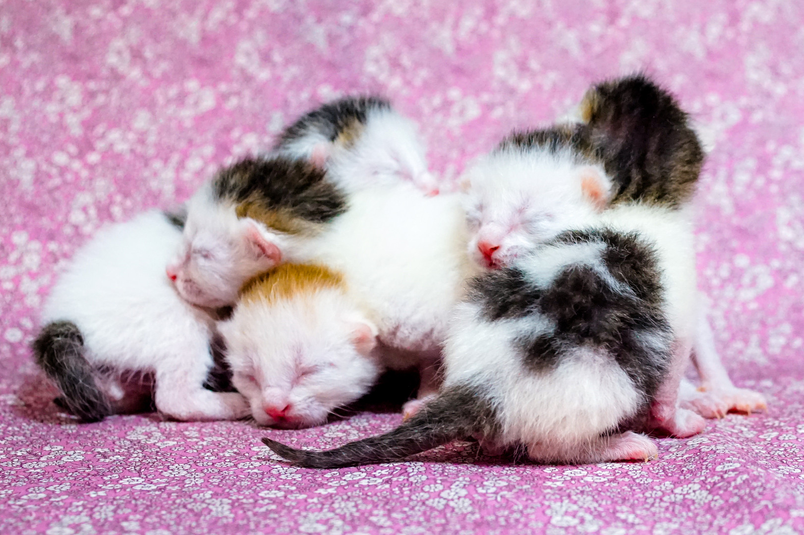 みんな抱えても、両手に納まる程の大きさです(*^_^*) どの子もウシちゃん譲りで、頭にブチがあって、ブチと同色の長い尻尾です(#^.^#) ちっともジッとしていないので、撮るのは大変です(*_*;