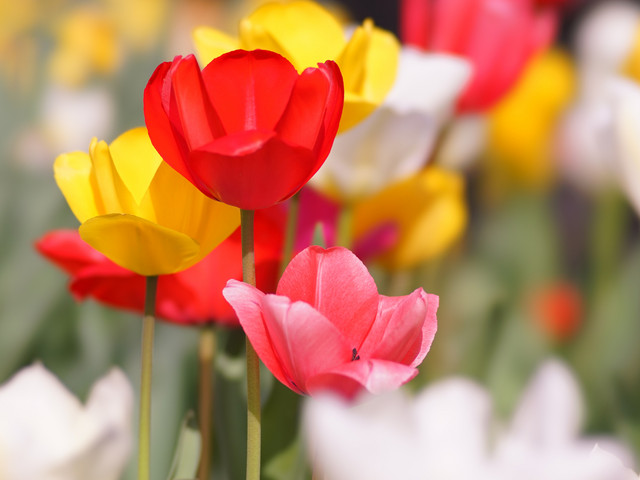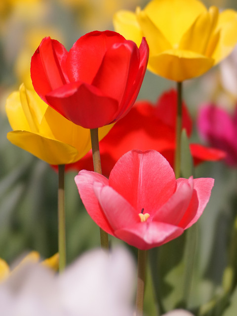 しかし、花壇にチューリップ、赤白黄色きれいだな↑