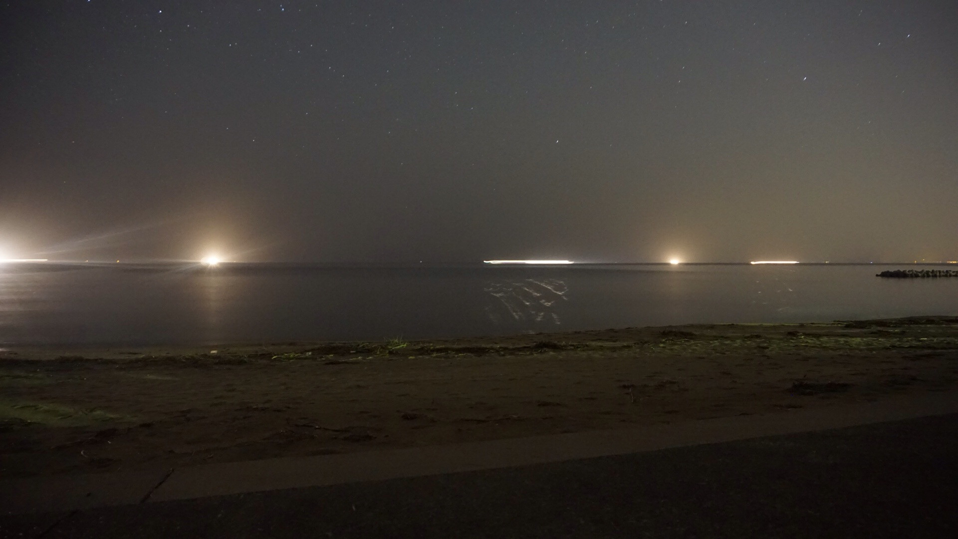ホタルイカをとりに来たら、漁船がいっぱい 深夜の星空と海の灯りが綺麗でした