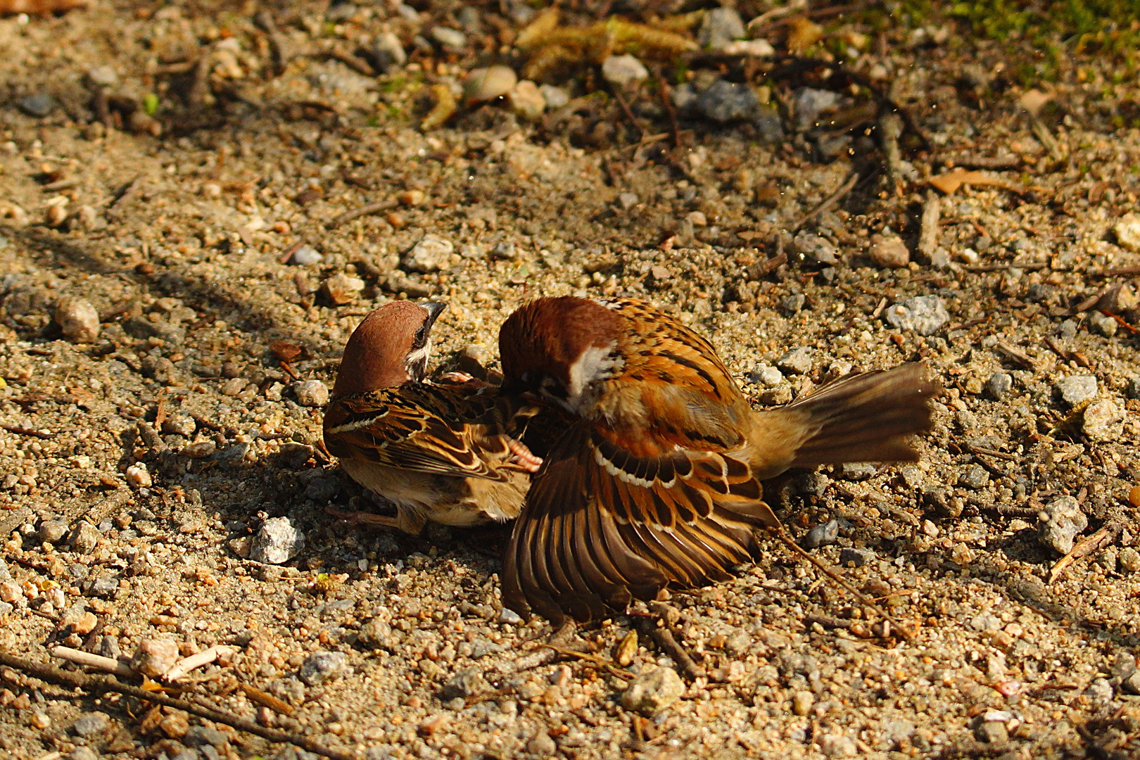 スズメがバタバタしていたので、ケンカかと思って撮りましたが、こうして見ると交尾しようとしているようですね。 でも、この1枚で電池が切れて、続きが撮れませんでした。 #スズメ#