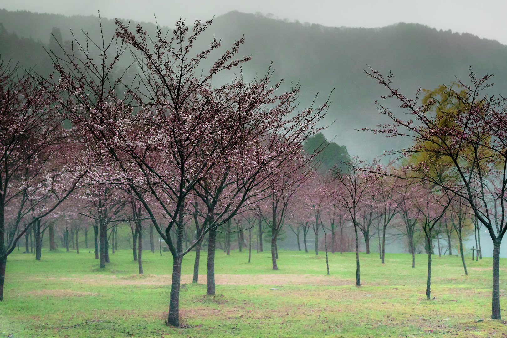 桜はまだ蕾の余呉湖にて。