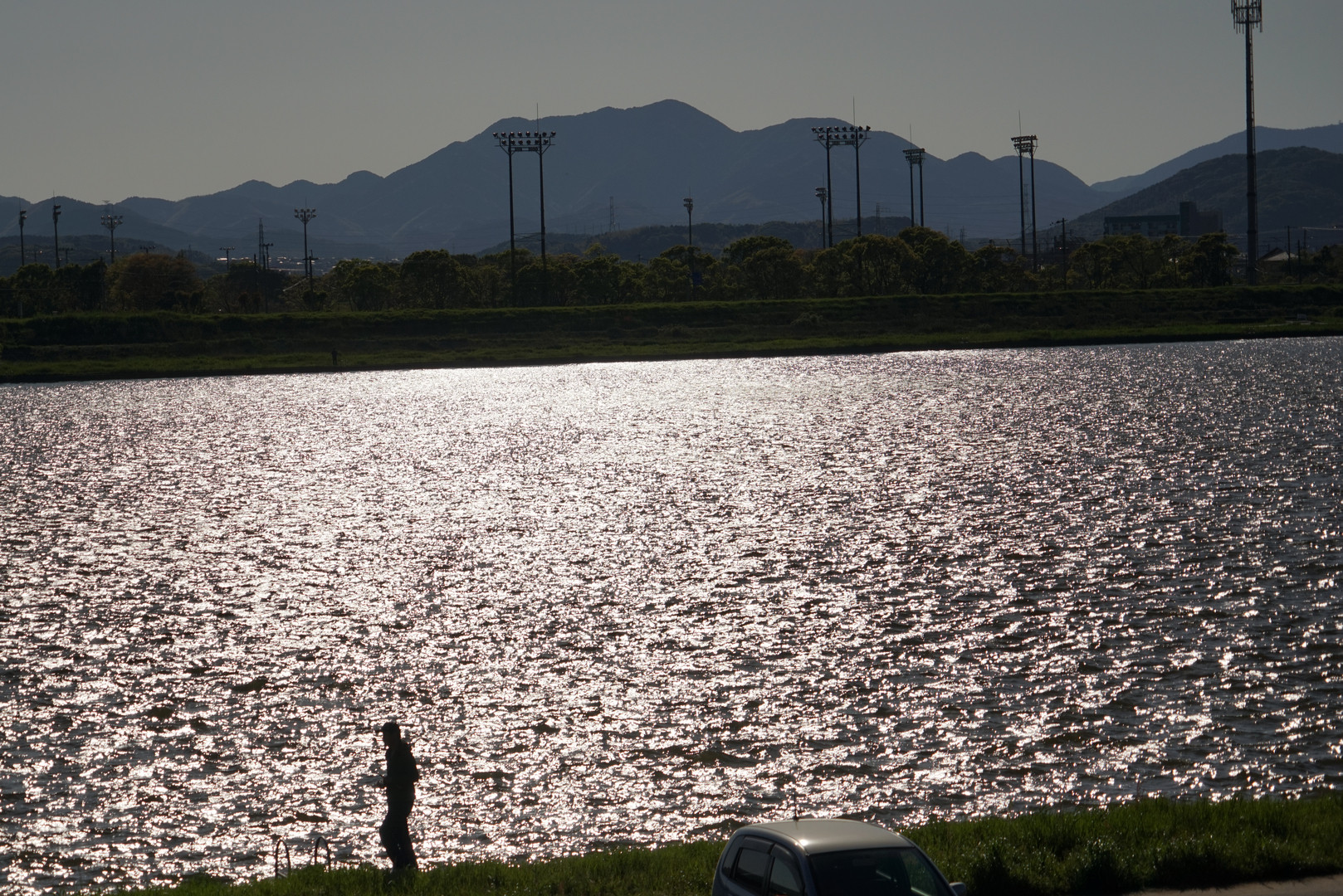 夕方に遠賀川の河原を歩いてみました。 ここには走っている人が沢山います。