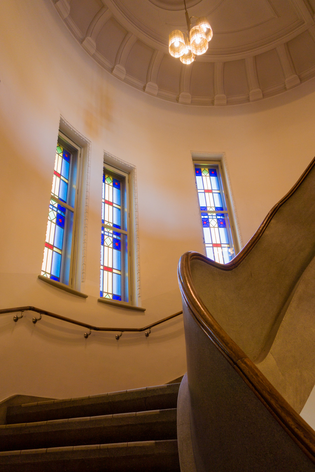札幌市資料館の中央階段のステンドグラスが綺麗でいい雰囲気でした。