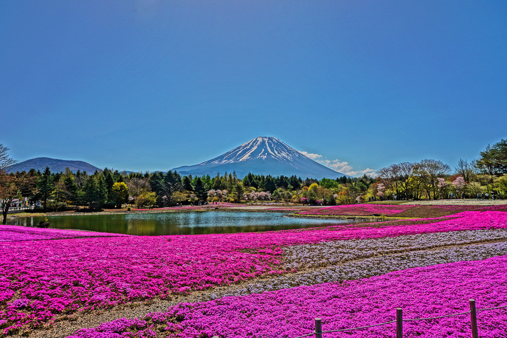 芝桜の絨毯の上に浮かぶ富士です。