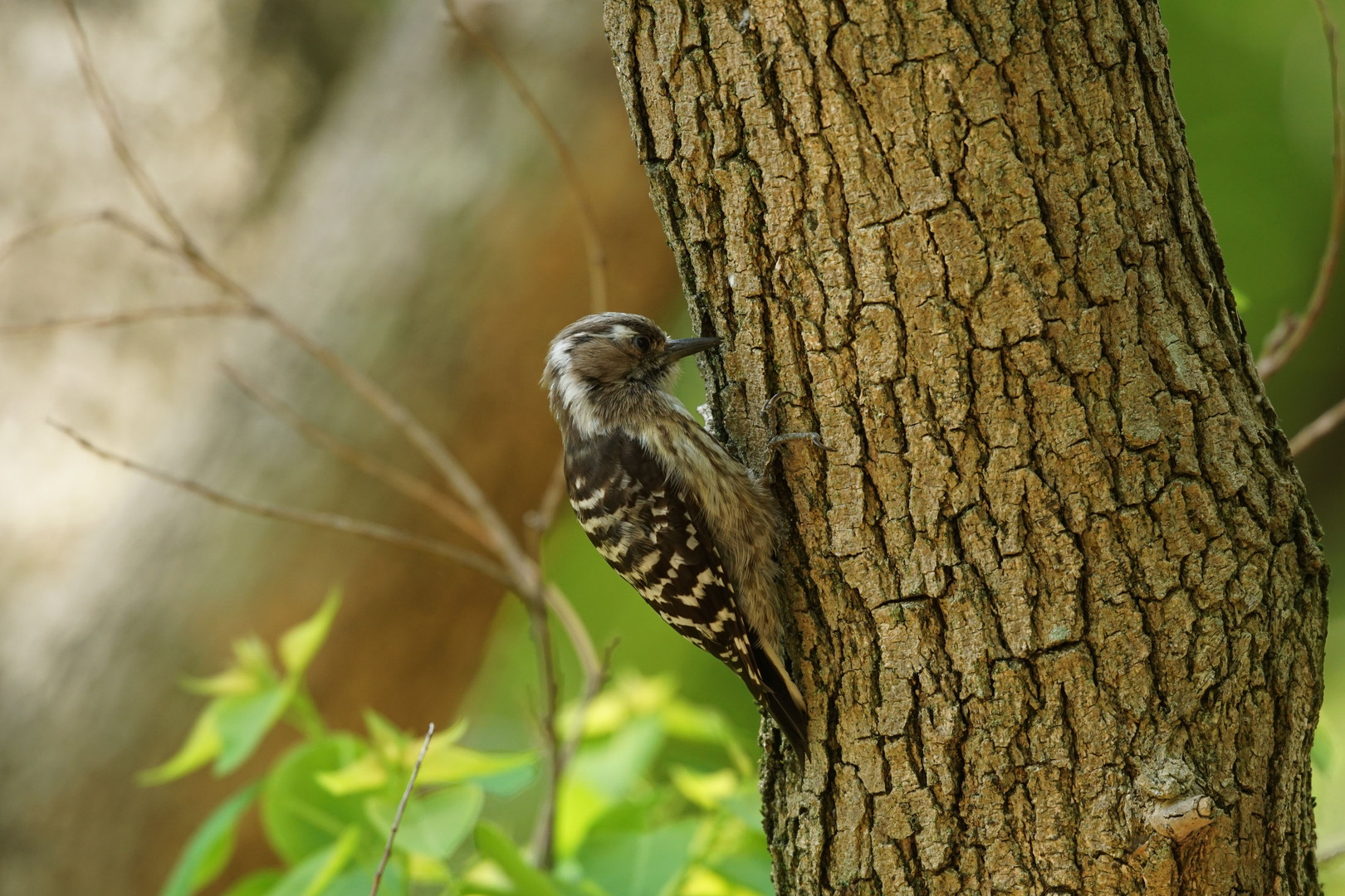何も鳥が来ない中、コゲラちゃんが現れてくれました。 前の日ならサンコウチョウ出たらしいのに、この日はだめでした。