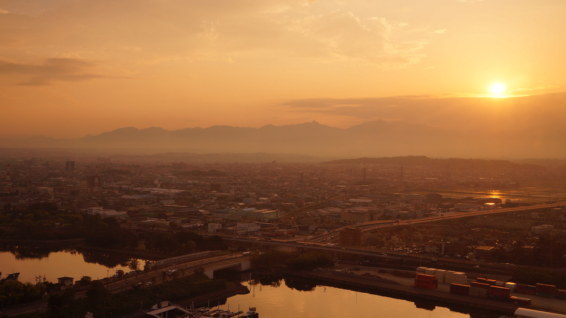 谷を照らす夕日