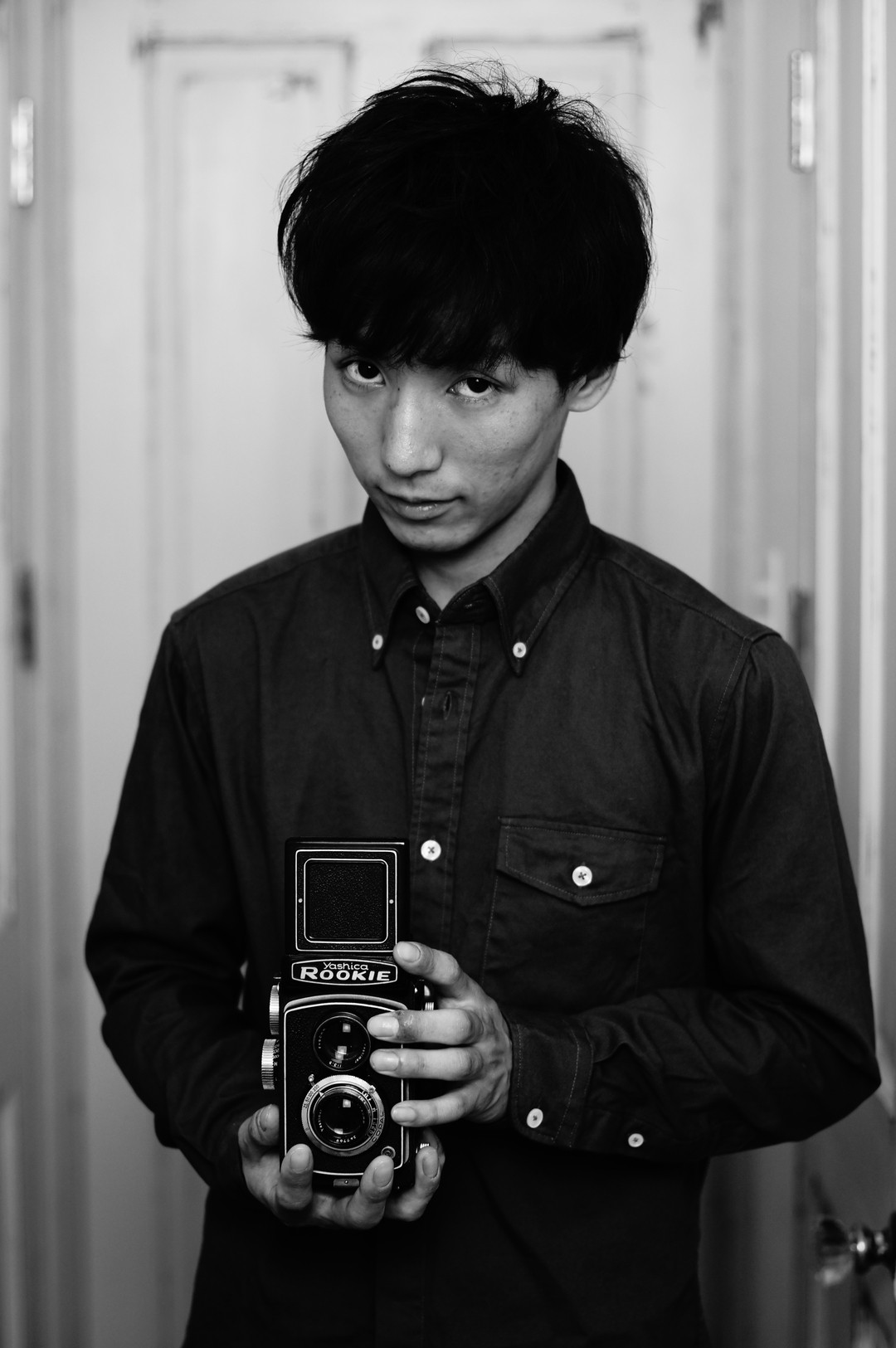 だんせいのポートレートを撮影。小物に二眼レフを持てせたらいい表情をしてくれました^^