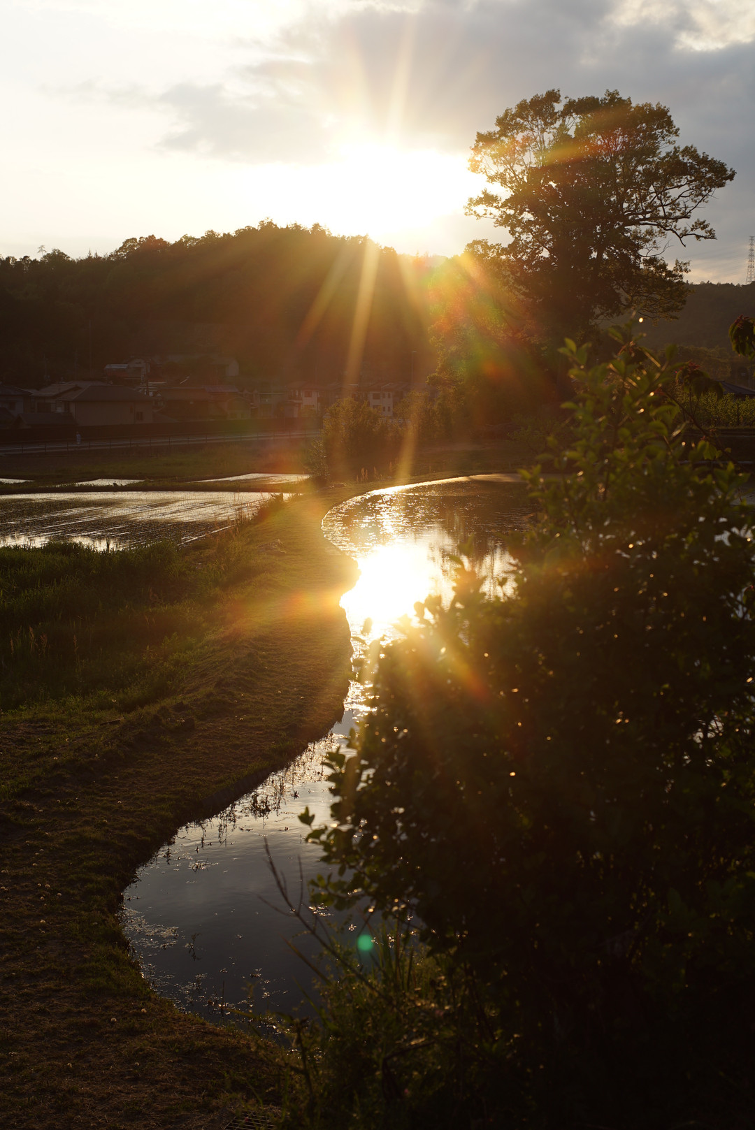 田に水が引かれ始めると、水に写っているものを撮りたくなります。