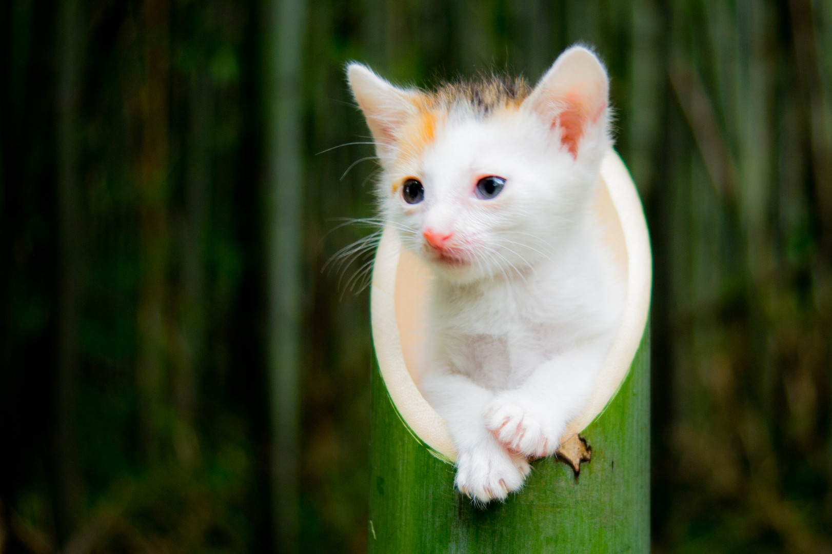 竹細工用のノコギリを買って、切り口が綺麗になる様に斜めにカットしました(#^.^#) うちの竹林をバックにセッティングをして、撮ってみました(*^_^*)