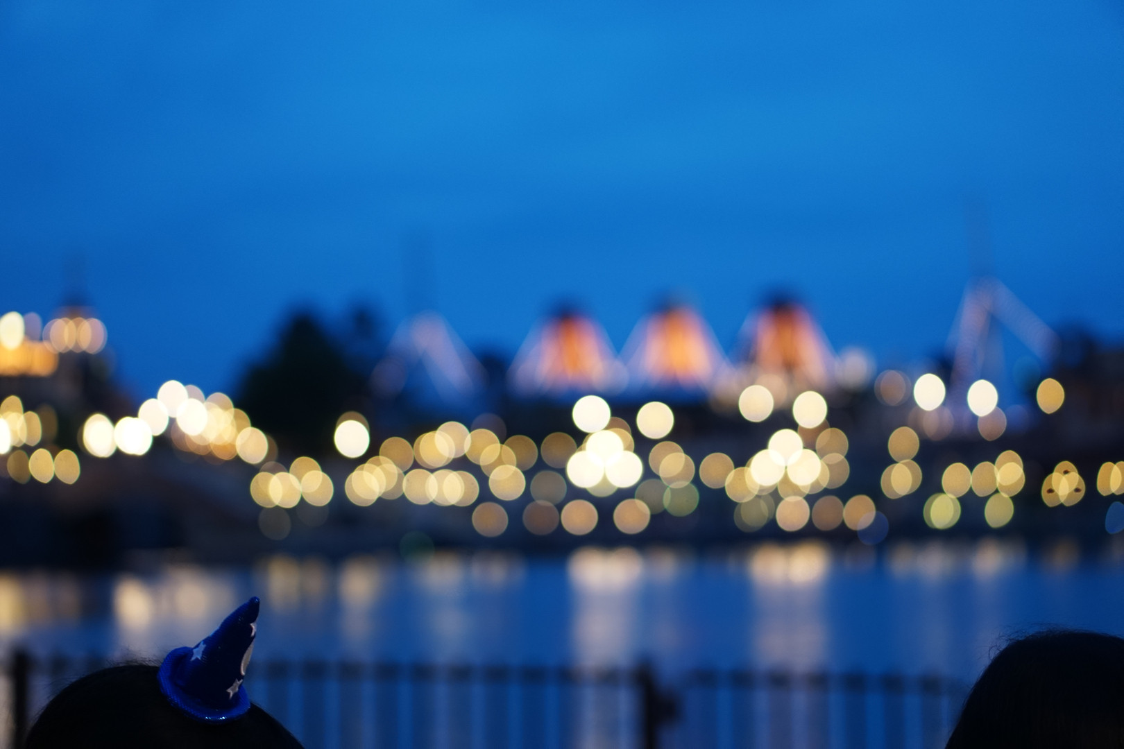 東京ディズニーシーのナイトハーバーショーの開始を待ってる方の「魔法使いの弟子の帽子」のアクセサリーを撮らして頂きました。タマボケの練習~♪