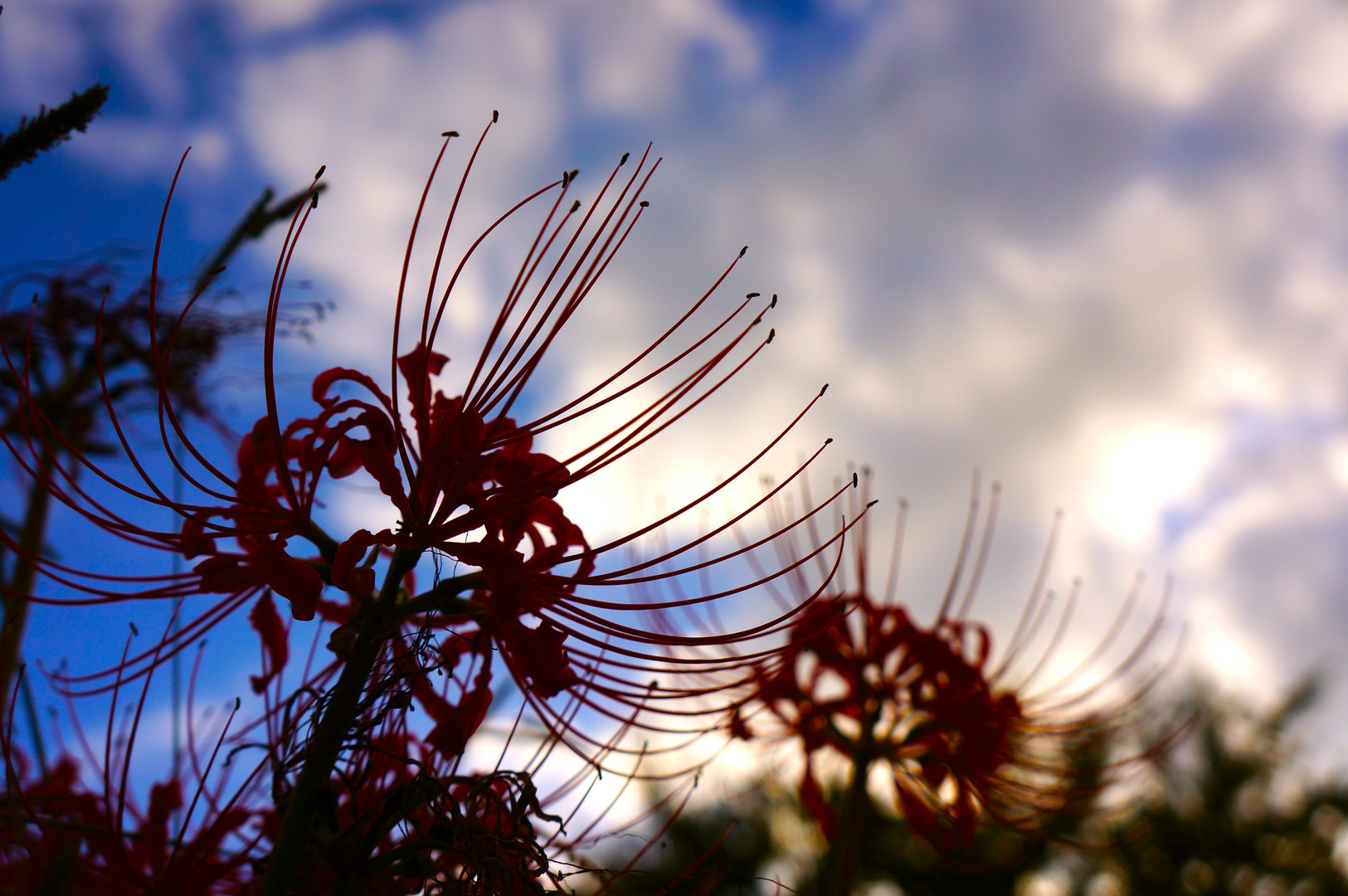 彼岸花の美しさを私なりに表現してみました。 空の青との比もあって雰囲気のある写真にしました。