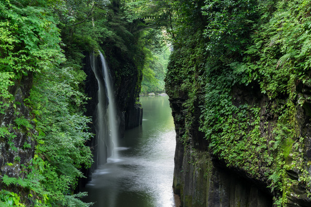 新緑萌える高千穂峡にて