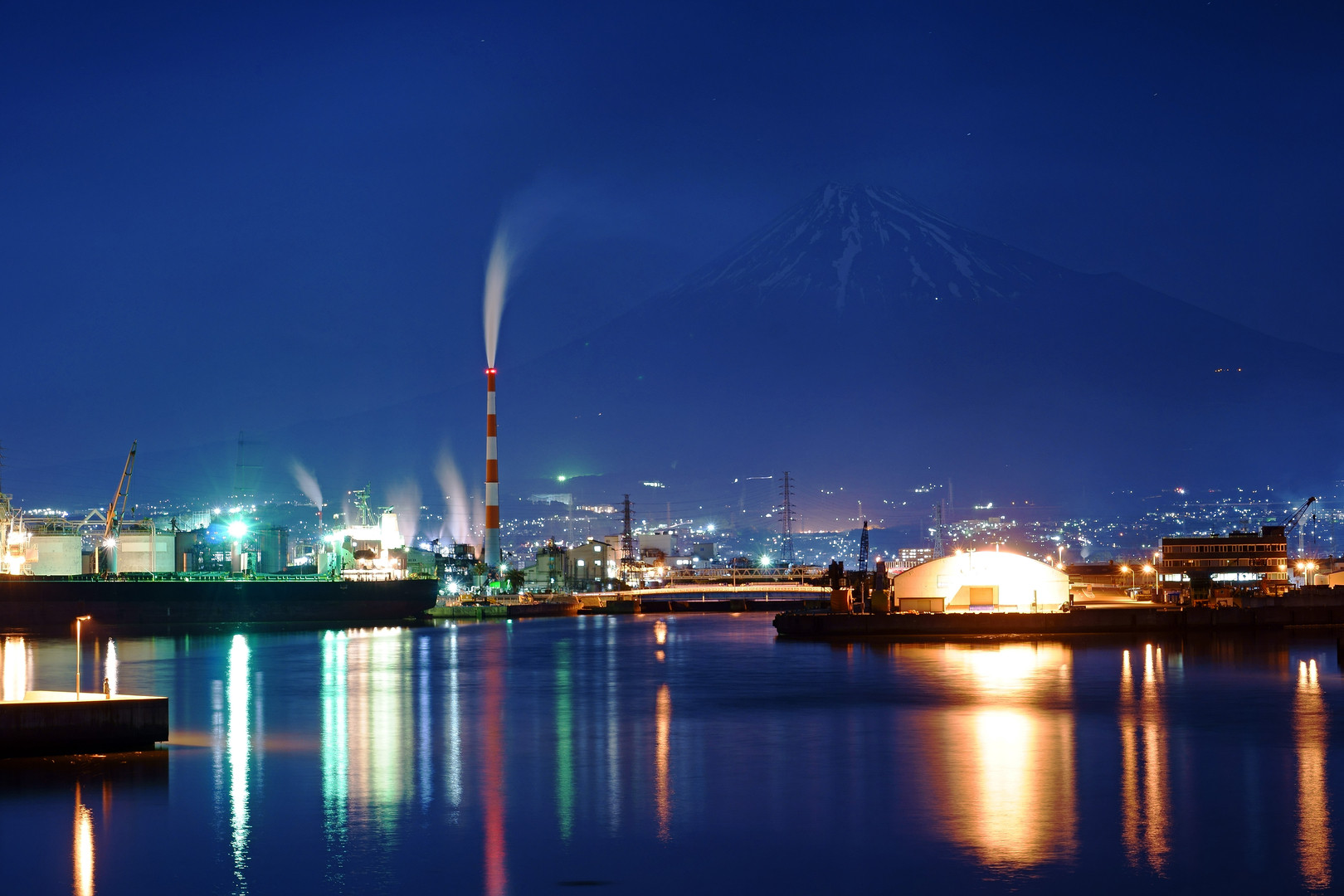 自然の象徴の富士山と煙を吐く工場が隣接しているというのはいいのか悪いのか・・・。 考えさせられる眺めでした。