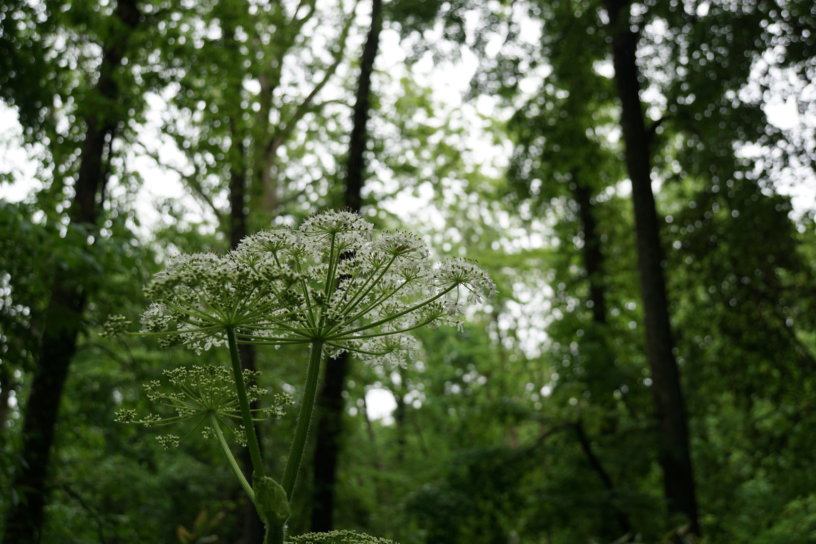 森の中、霧雨が降りひっそりとしていました。 そんななか高貴な感じに咲いているオオハナウドが 輝いていました。