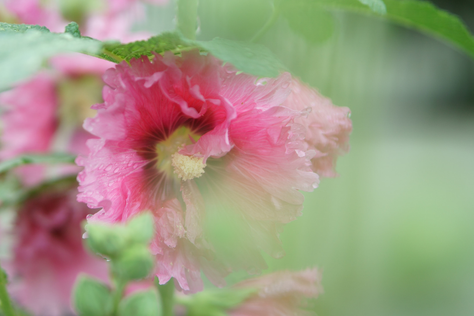 雨上がりの朝 タチアオイが光を集めていました。