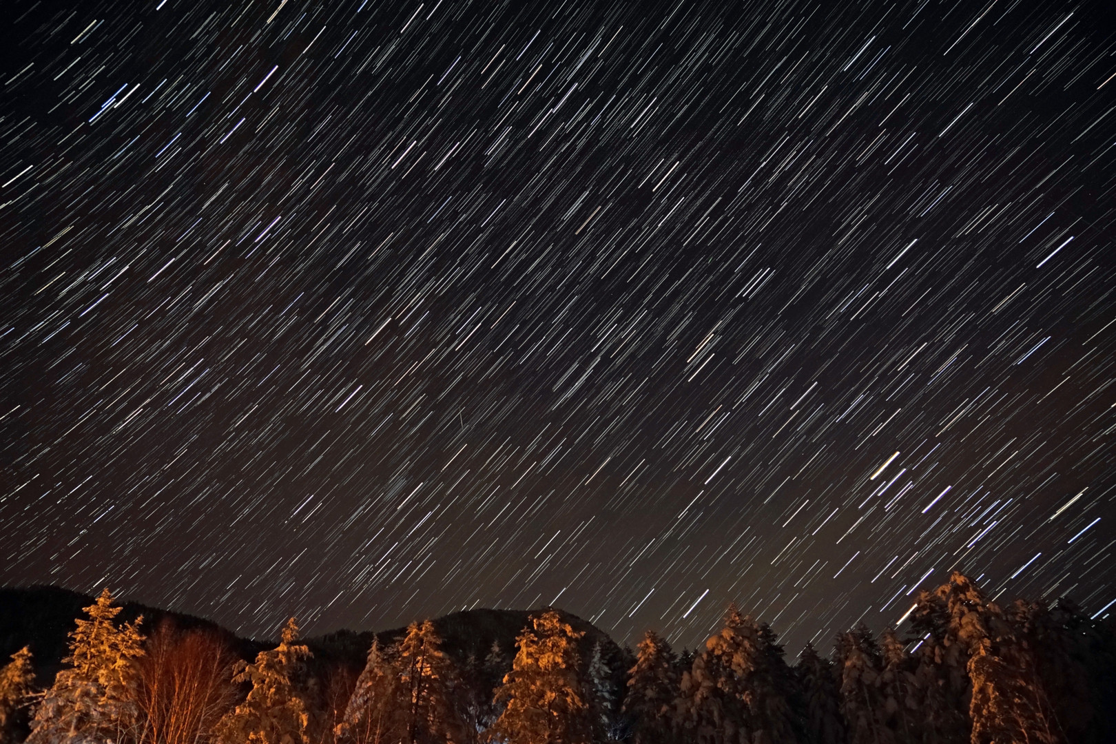 蔵出しです。 手前の木に光が当たっているのは、時折来る除雪車のヘッドライトです。