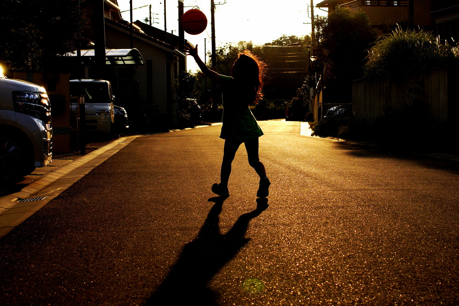 家の前でバスケをして遊びました。
