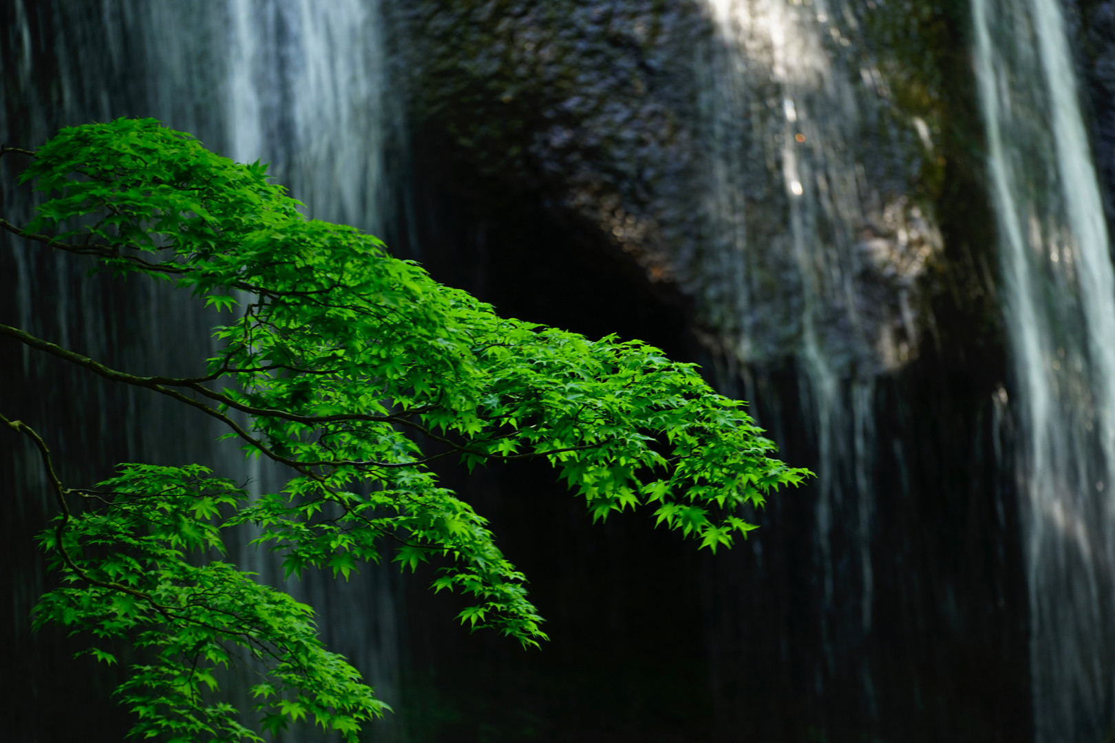 福島市から猪苗代湖に抜ける山岳道路をひた走り、迷い込んだ温泉地の更に奥の秘境滝 FE 70-200mm F4 G OSSのデビューショットとして、最高のスポットでした。 心地よいマイナスイオンたっぷりの森林浴をお届けいたします。